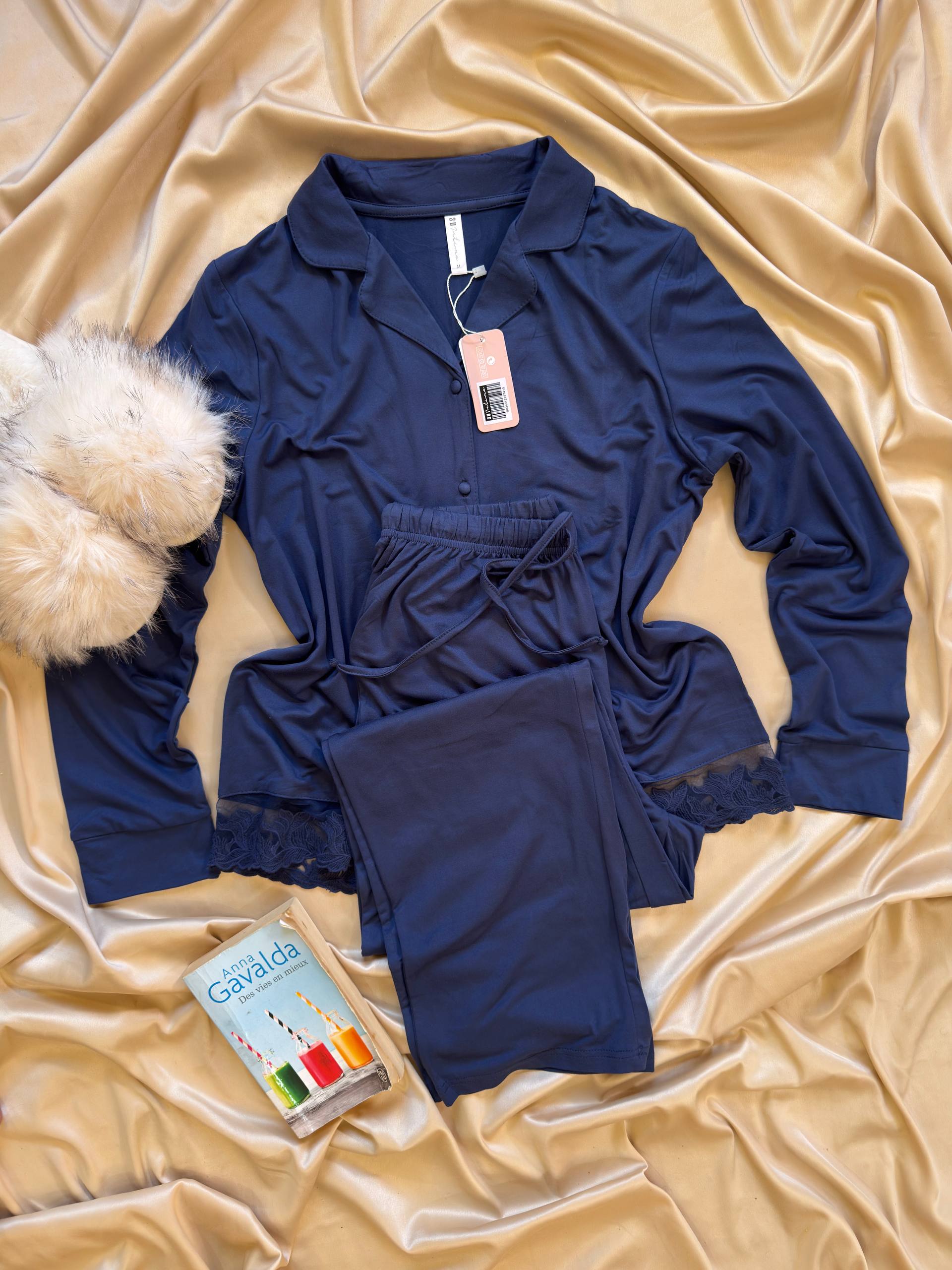 Blanc cassé, bleu nuit, vert